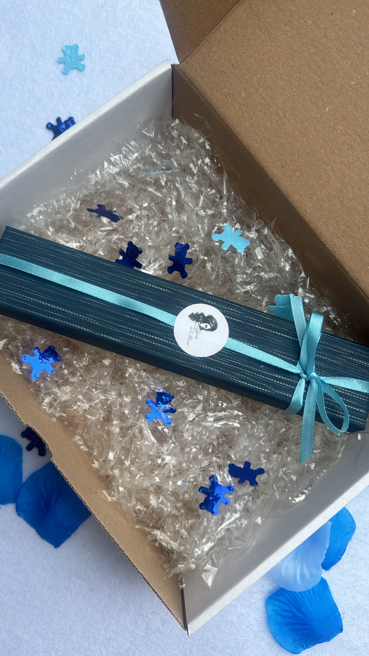 Prezzo inteso con la confezione composta come nelle prossime storie (confezione con nastro, paglia, orsetti e scatola)